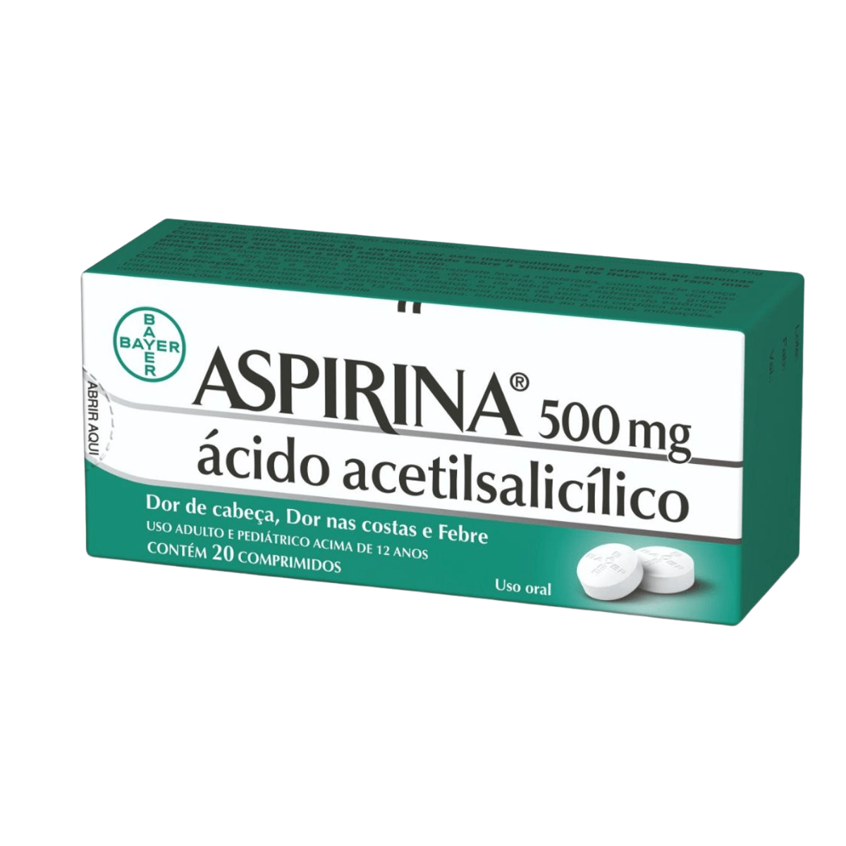 Aspirina Ácido Acetilsalicílico 500mg 20 comprimidos